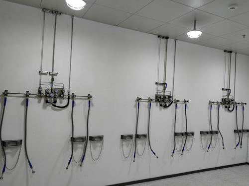 1.氣瓶間內的壓力調節器開關與研究空間內的氣路POS機相互之間用SS316LBA管做好連到,管路內從表面光滑度為Ra<0.4umBA級管路。